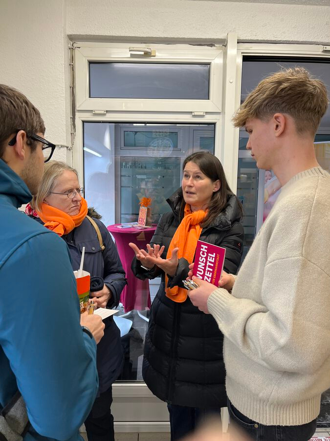 Aber auch Info zum politischen Geschehen und zur Wahl stand auf der Wunschliste, ein Stadtparkfestival oder eine Freilauffläche für Hunde. Bürgermeisterin Christiane Meyer war da, um mit den jungen Menschen ins Gespräch zu kommen. Und auch die Kandidierenden der NLE konnte man persönlich kennenlernen. Für alle war es eine positive Erfahrung, wie Demokratie vor Ort praktiziert und erlebbar gemacht wird.