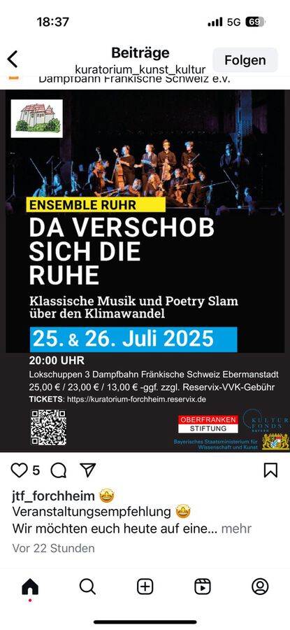 Die NLE hatte ihre Mitglieder eigens auf das Konzertereignis aufmerksam gemacht, das zweimal ausverkauft war. Bei der Durchführung half der Kulturkreis Ebermannstadt, in dessen Vorstand ebenfalls NLE-Mitglieder aktiv sind.