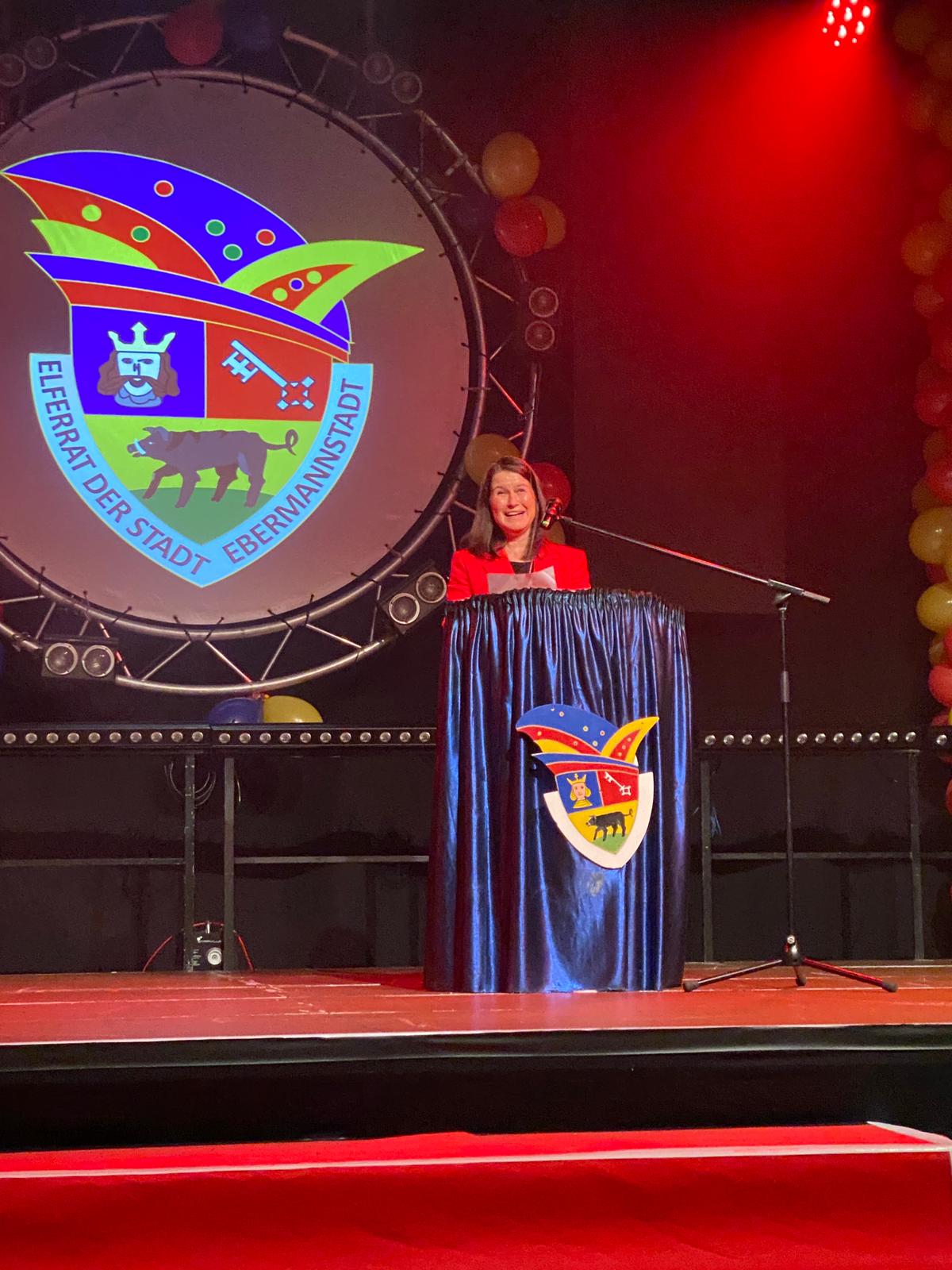 Christiane Meyer eröffnet die Prunksitzung des Elferrats - das NLE-Stadtratsteam ist stark vertreten