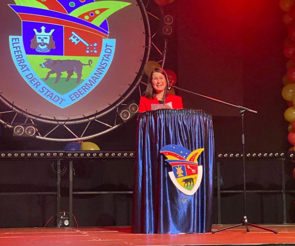 Mit launigen, aber auch nachdenklichen Versen hat Bürgermeisterin Christiane Meyer die Prunksitzung des Elferrats am 10. Januar eröffnet. Die NLE war mit einer Zehnerdelegation dabei und feierte die Gardetänze, Sketche und Büttenreden der Aktiven mit gebührendem Beifall.