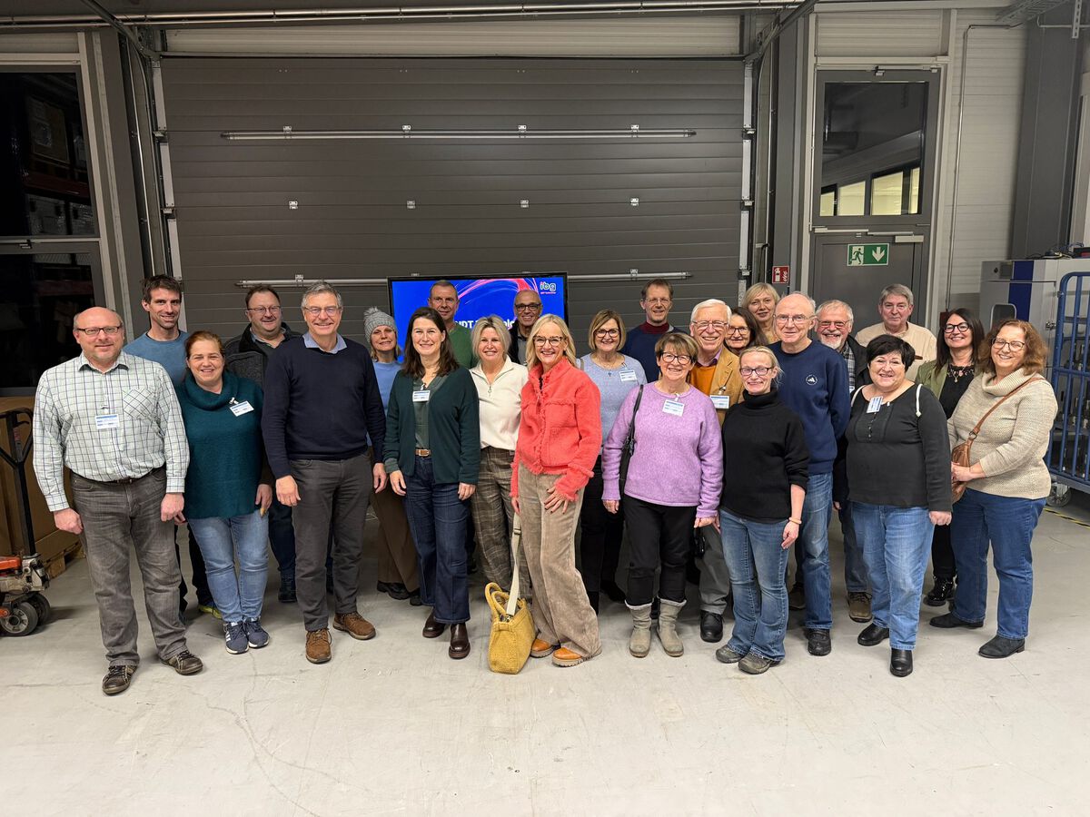 Wo immer es im Alltag auf Festigkeit und Zuverlässigkeit ankommt, war vermutlich ibg Prüfcomputer im Spiel. Das war die Erstinformation beim NLE-Besuch am 8. Januar. Geschäftsführer Dr. Christian Artmann und Technikleiter Heinz Pöhlmann führten durch den Betrieb an der Pretzfelder Straße. Sie brachten die 20 Teilnehmerinnen und Teilnehmer gehörig zum Staunen. Ob weltweit in riesigen Windrädern, in Autos, Zügen oder in Handys, jede Schraube, jede Welle, jede Kugel, jede kritische Komponente aus Metall wird auf verborgene Materialfehler überprüft. Erst dann darf sie geliefert oder verbaut werden.