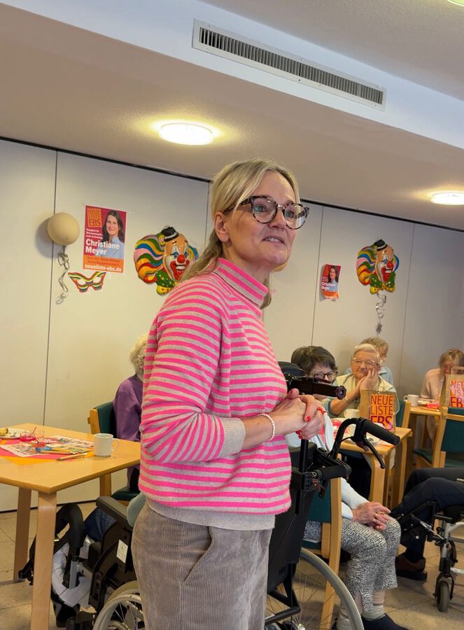 Aber auch die Sorgen der älteren Bürgerinnen und Bürger kamen zur Sprache. Zum Beispiel werden die wassergebundenen Gehwege Richtung Innenstadt bei Regen matschig und sind für Rollatoren schwer zu bewältigen. Und man wünscht sich, dass häufiger Nachmittagsveranstaltungen im Bellini angeboten werden, z.B. über den Kulturkreis oder andere Vereine. Christiane Meyer und das NLE-Stadtratsteam hatten selbst gebackene Kuchen mitgebracht, der kleine Saal war hübsch dekoriert.