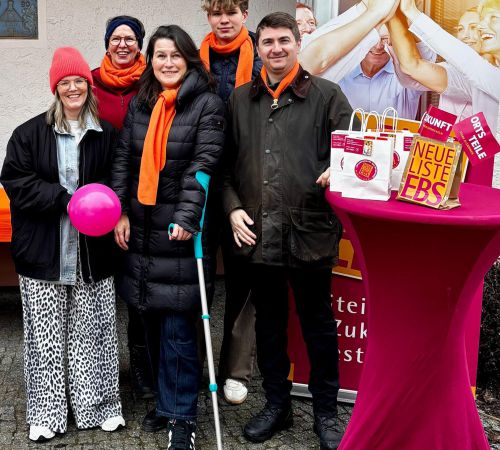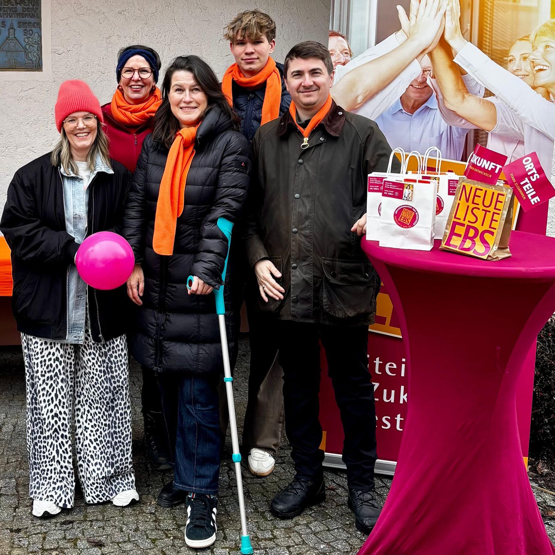 Auch bei kaltem Wind und Nieselregen war der NLE-Infostand Treffpunkt für Ortsbewohner und NLE-Kandidierende. Bürgermeisterin Christiane Meyer war trotz Verletzungshandicap dabei und gab Auskunft über Themen, die für die Bürgerinnen und Bürger wichtig sind. In Wohlmuthshüll ging es um die Kanalsanierung, die gegenwärtig im Winterschlaf ist, aber weitergeführt wird, sobald es das Wetter erlaubt. Immerhin werden mehr als 3 Millionen Euro aus dem Stadtsäckel dafür bereitgestellt. Thema waren auch die damit verbundenen Umleitungen und der Zustand der für Anlieger freigegebenen Wohlmuthshüller Straße. Die NLE-Kandidierenden, die an den Haustüren Infomaterial und Krapfen verteilten, wurden überall freundlich aufgenommen. Auf besonderes Interesse stieß der Hinweis, dass Christiane Meyer auch in den Kreistag gewählt werden muss. Nur so können EBSer Anliegen vernehmbar und mit Gewicht eingebracht werden.