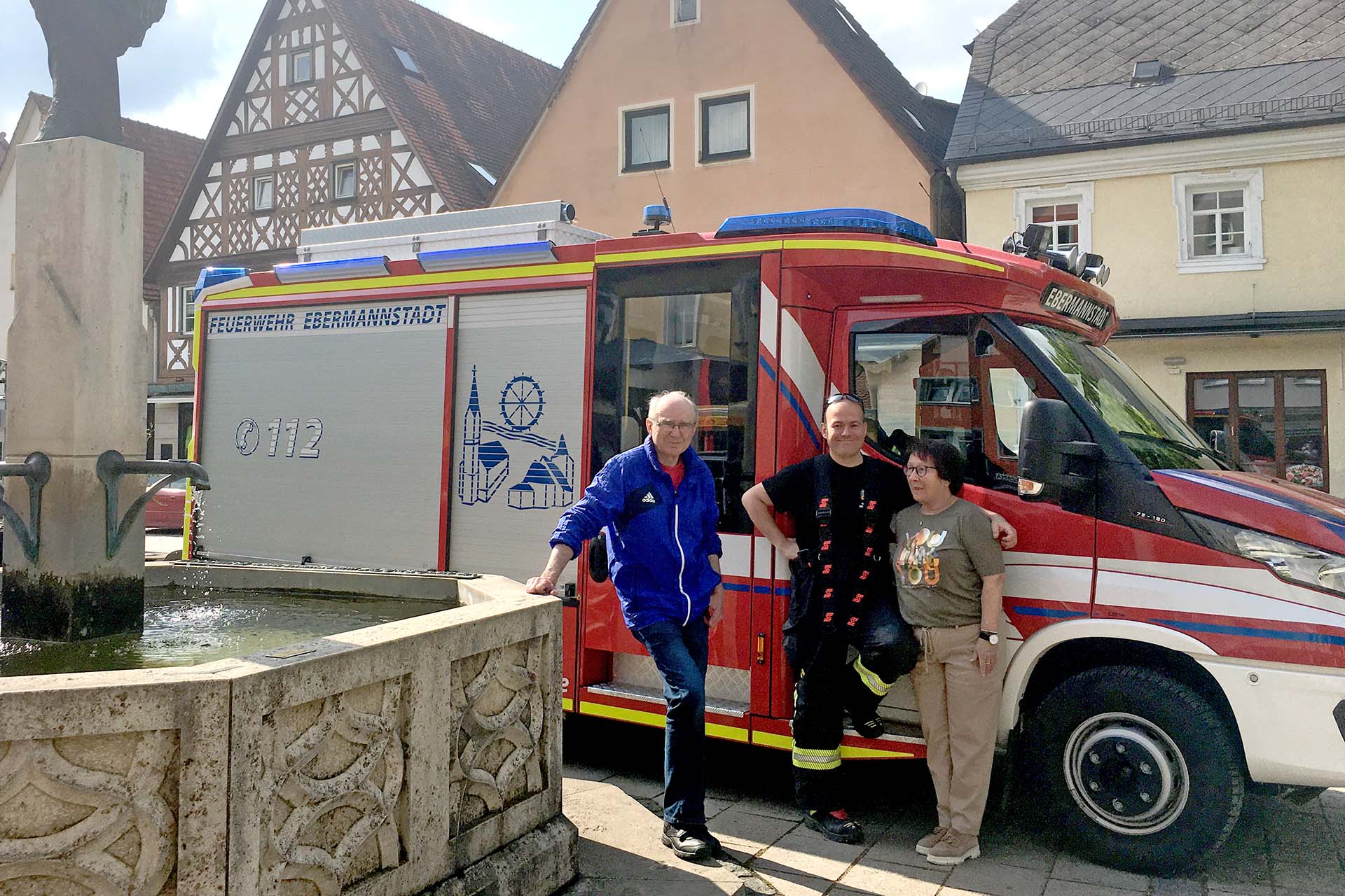 Auf dem neuen kleinen Löschfahrzeug ging es vor allem durch die Brauhausgasse mit ihren Engstellen. Die NLE-Stadträte Bernhard Hübschmann und Erwin Horn sowie Brigitta Dörfler (FW/BB) waren beeindruckt von der Zentimeterarbeit, die an Häuserecken und in engen Kurven nötig war. Deutlich wurde vor allem, wie wichtig es ist, dass der Weg für das Feuerwehrfahrzeug frei bleibt und nicht durch unerlaubt abgestellte Pkw versperrt wird. Im Einsatzfall kann es nicht nur um Sachwerte, sondern vor allem auch um Menschenleben gehen. Ein herzliches Dankeschön ging an Tobias Theiler und seine Kameradinnen und Kameraden von der Freiwilligen Feuerwehr Ebermannstadt.