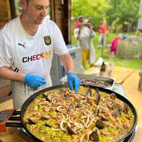Bürgermeisterin Christiane Meyer als Vereinsvorsitzende konnte zahlreiche Mitglieder, darunter auch die NLE-Stadträte begrüßen. Schatzmeister Markus Kriegl hatte eine Riesenpfanne Paella zubereitet – passend zum Viertelfinalgegner Spanien. Leckere Nachspeisen und die Getränkeauswahl ließen nichts zu wünschen übrig.