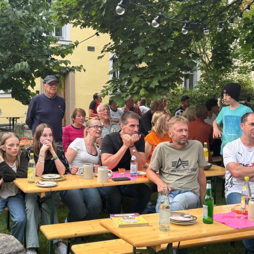 Die Spanische Fußballmannschaft sorgte zwar zwischendurch für einen gehörigen Schuss Wermut und versetzte der Stimmung einen Dämpfer. Trotzdem blieb man noch lange beisammen und genoss den gemeinsamen Sommerabend. Allen, die bei der Organisation geholfen haben, ein herzliches Dankeschön, vor allem natürlich der Familie Ruhland, die nicht nur ihren schattigen Garten sondern auch ihre Küche zur Verfügung stellte.
