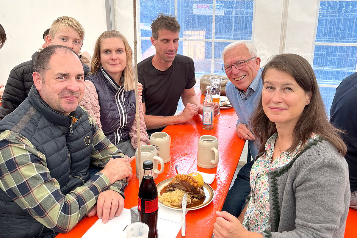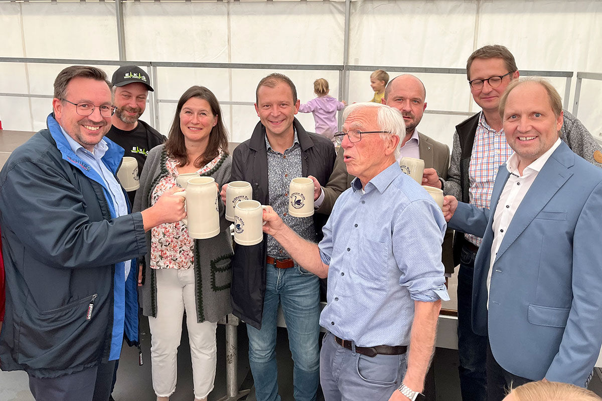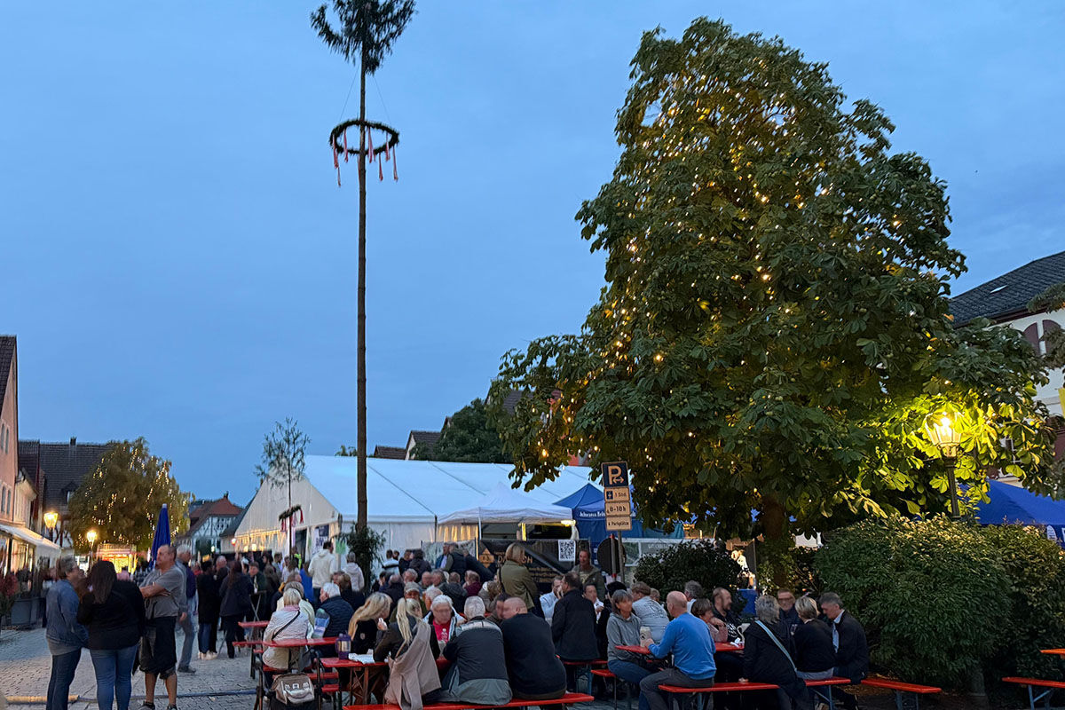Bürgermeisterin Christiane Meyer (NLE)  eröffnete die Kirchweih mit einem Dank an den Kerwa-Glubb und zitierte aus einem Zeitungsbericht von 1949, der bereits die Ebser Kirchweih lobte. Beim traditionellen NLE-Frühschoppen markierte ein Luftballon in den NLE-Farben den Tisch. Der Himmel klarte genau rechtzeitig auf, um einen Gang durch den Ebser Herbstmarkt zu machen und den verkaufsoffenen Sonntag zu nutzen. Aus gutem Grund stuft der Landesentwicklungsplan unsere Stadt als Mittelzentrum ein!