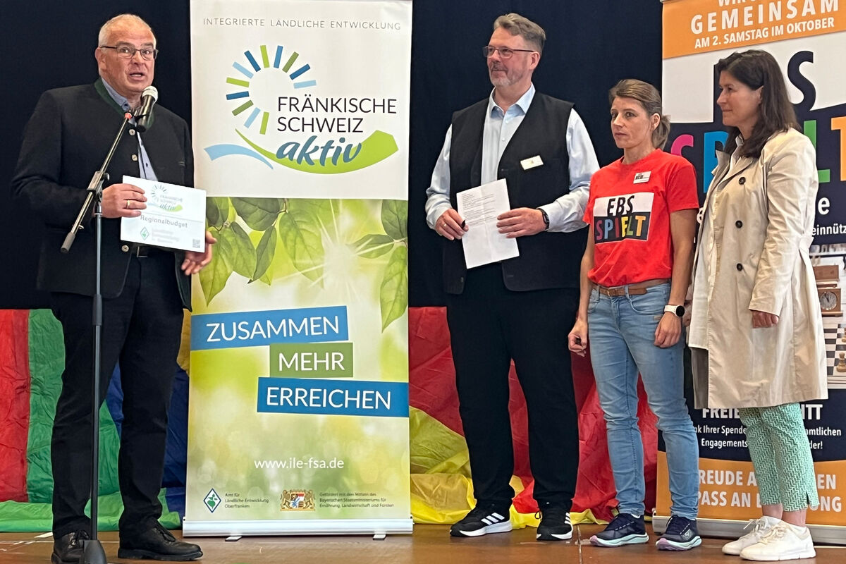 Nicht nur Landrat Dr. Hermann Ulm war gekommen, sondern auch MdB Lisa Badum aus Forchheim. Sie bescheinigte in ihrem Grußwort, dass Ebermannstadt in Sachen Gemeinsamkeit und Zusammenhalt „vorne dran“ sei und gratulierte zum Jubiläum. Christiane Meyer bedankte sich bei den Leuten der ersten Stunde, bei Ideengeber Jörg Dettmer und den Mitorganisatorinnen Susanne Löser und Susanne Behlert (alle NLE), sowie bei Katharina Lipfert und Julia Drummer vom Jugendamt der Stadt für den Anschub aber auch für den langjährigen Einsatz. Sie vergaß aber auch nicht die vielen anderen Helferinnen und Helfer sowie die Sponsoren, die es möglich machten, dass „Ebs spielt“ von Anfang an ohne Eintrittsgelder auskam.